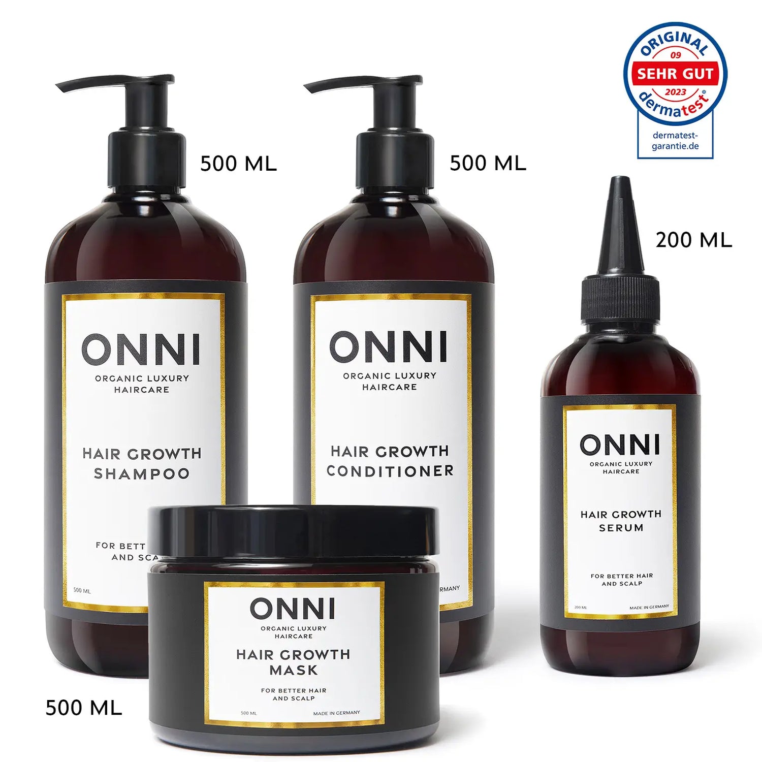 Nuestra línea Classic en el tamaño más grande posible - perfecto para todos aquellos que adoran ONNI y no quieren volver a utilizar ningún otro producto para el cuidado del cabello. Más contenido, menos compras repetidas: ideal para una rutina de cuidado constante a largo plazo. Y lo mejor de todo: ¡XXL también significa más cuidado a mejor precio! Dependiendo del uso y de la longitud del cabello, el set durará aproximadamente de 4 a 6 meses.